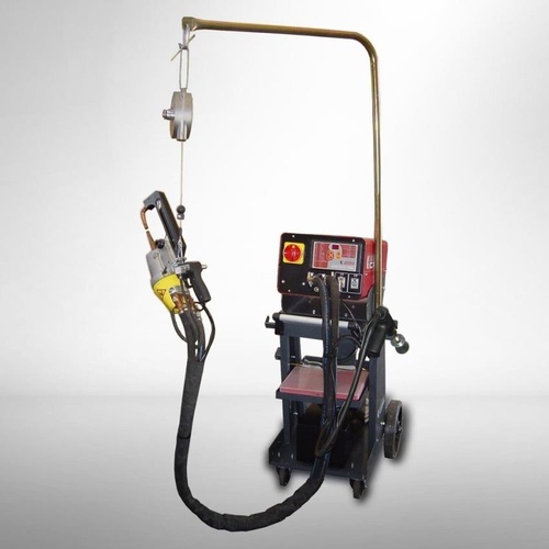 Automatic transformer spot welding machine designed for 1-2mm welding rods. Operates on 230V single-phase power with a 50Hz frequency and copper construction.