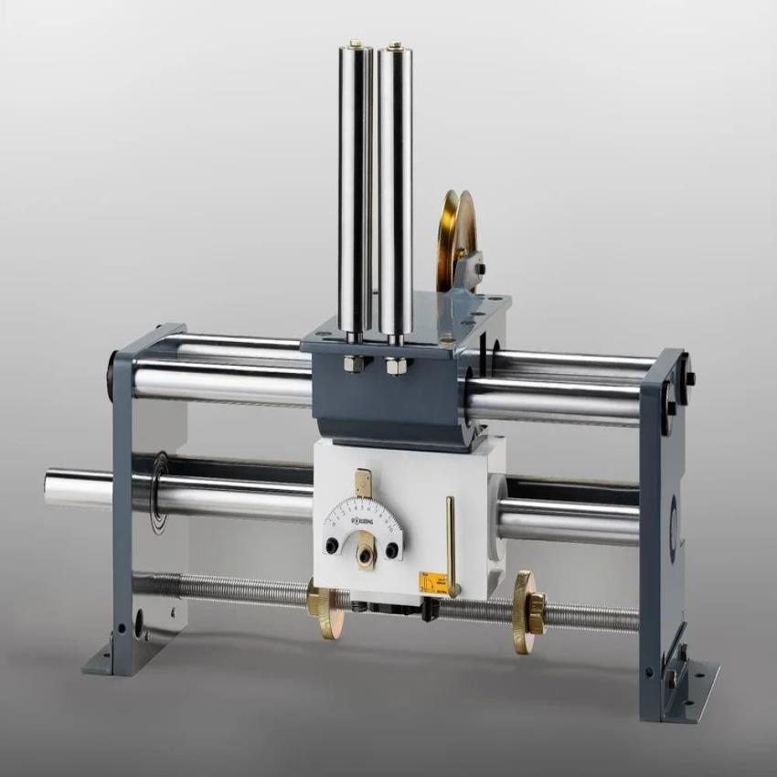 Automatic traverse assembly with guide carrier and linear bearings for wire take-up machines. Handles substantial loads. Corrosion resistant, white and grey, wooden packaging.