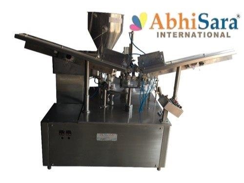 Automatic tube filling and sealing equipment. Operates on 440V, 50 Hz. Fills 10-100 Gm at 40-60 per minute. Features a 40 Kg storage hopper. Electric powered.