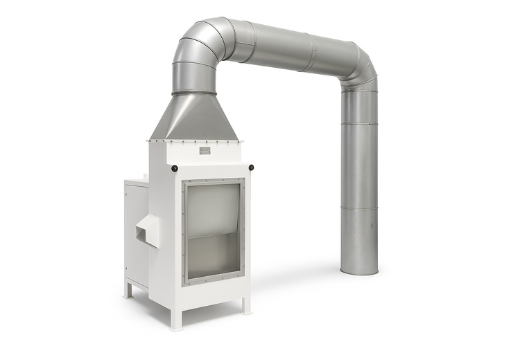 Automatic aspiration machine for cleaned wheat, three-phase connection, 5 HP motor. Features 5 Kwh power consumption and variable production capacity.