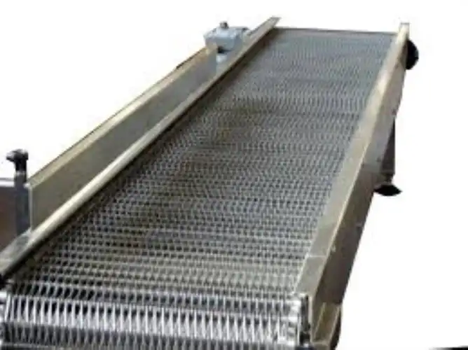 Automatic wire mesh cooling conveyor, 440V, 50 Kg/Feet capacity. Features 60 m/min speed, MS material, and horizontal inclination. Customized length from 1-20 feet for industrial applications.