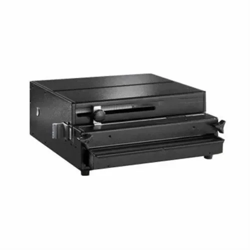 Automatic wiro punching device with 50 Hz frequency and 230 AC voltage. Dimensions: 15-inch width, 18-inch depth, 7-inch height. Weight: 21.3 kg.