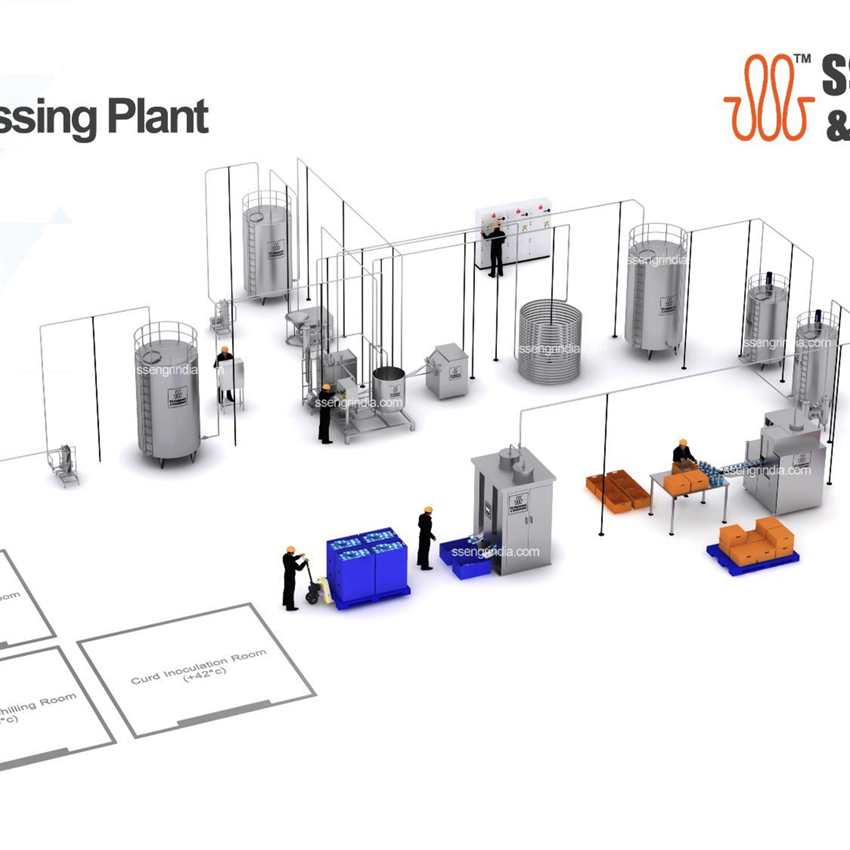 Fully automatic SS304 yogurt making plant. Operates on 440V, 3-phase power. Specifically designed for large-scale, efficient yogurt production applications.