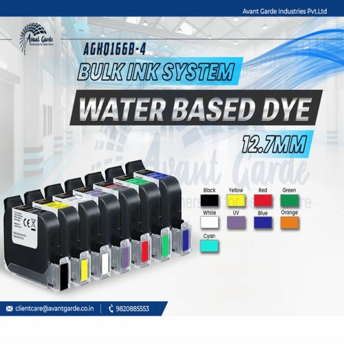 Black water-based dye ink for wide applications. This liquid ink is supplied in a bulk system, product code AGHQ166B-4, with 12.7MM compatibility.