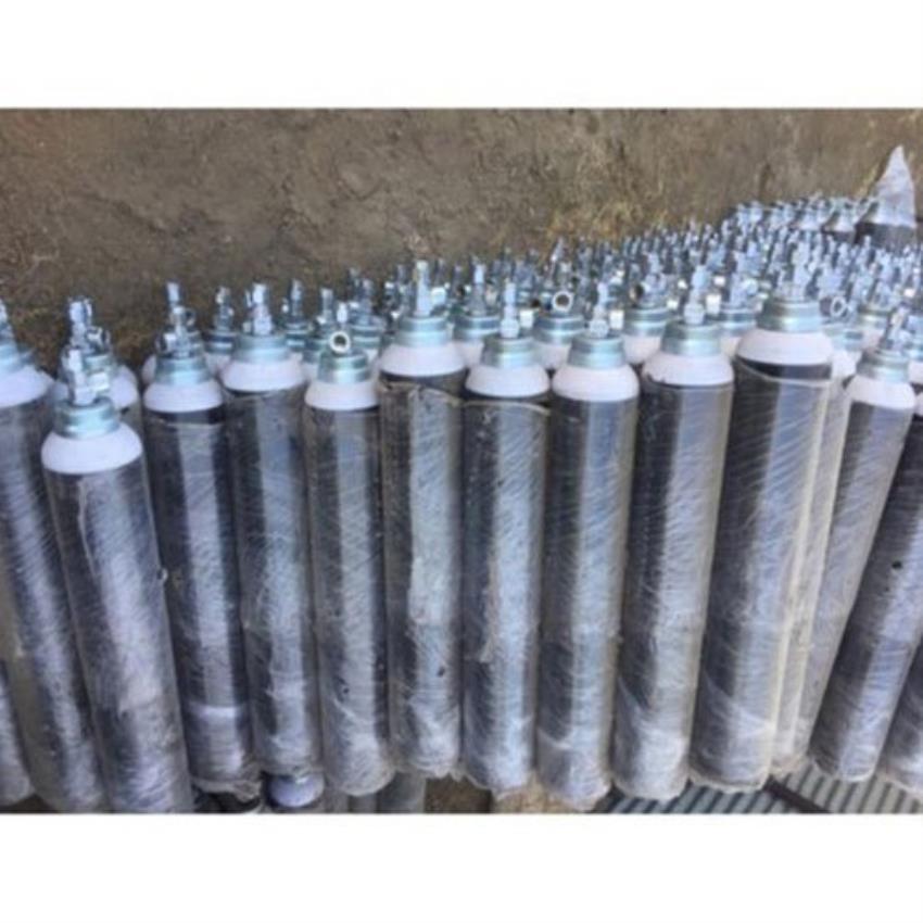 BIS certified, B-Type 10-litre empty medical oxygen cylinder for medical applications. Manufactured in India with a working pressure of 200 kgf/cm2. Black color.