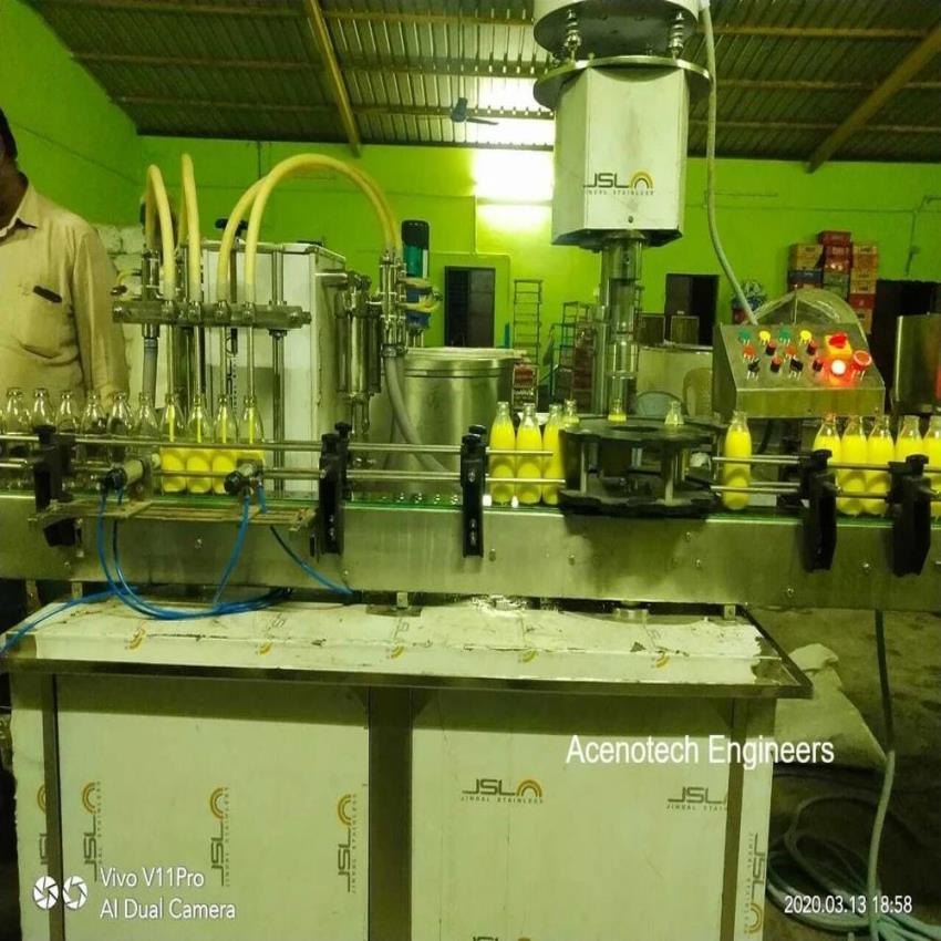 Mechanical badam milk bottle filling machine with 30 BPM capacity. Features SS 316 nozzle, single-phase power, and 1-year warranty. Weighs 350 Kgs.