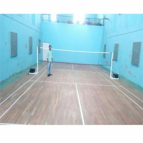 Mild steel badminton pole for sports application. Features electrostatic epoxy powder painting and a 12-month warranty. Designed for durability.