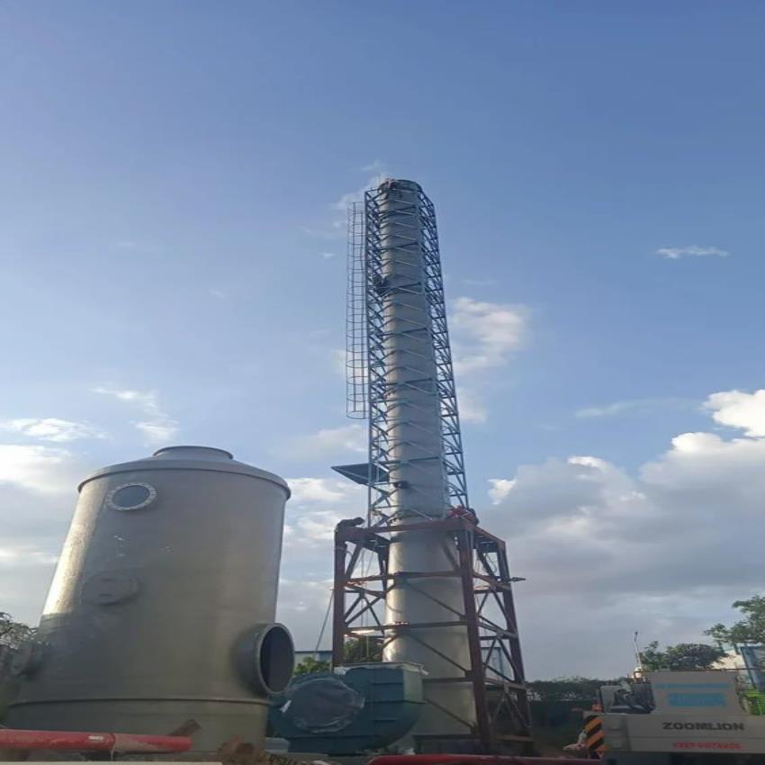 Mild Steel FRP chimney with Baffle Filter. Stands 25 feet tall with 500-800 m3/h suction capacity. Features 100 mm thickness and grey color.