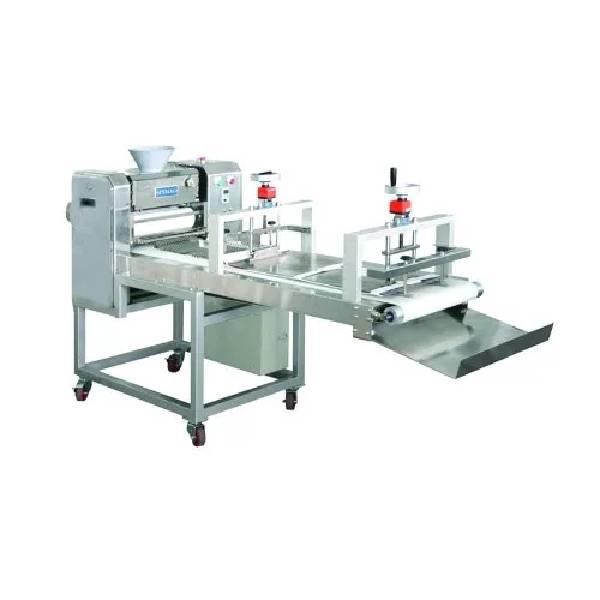Automatic baguette dough forming machine. Stainless steel construction, 3000 pcs/hr capacity, 0.4 HP motor. Handles dough up to 300kg, with adjustable roller gaps for commercial use.