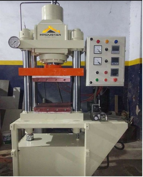 This semi-automatic 50 Ton Bakelite Molding Machine has a 5 HP motor, 440V, 50 Hz operation. Features 4 pillars, 6 heaters (6 kW total).
