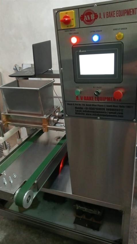 ISO certified bakery equipment, 50-100 Kg/h capacity. Single phase, automatic operation with 5 nozzles, 5 dropping points. Stainless steel body, 1-year warranty.