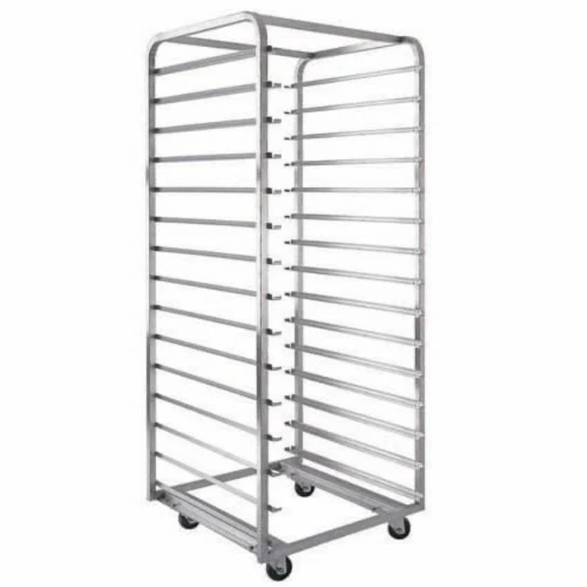 Stainless steel trolley specifically designed for bakery operations. Offers robust construction for transporting bakery equipment and goods safely. Easy to clean and maintain.