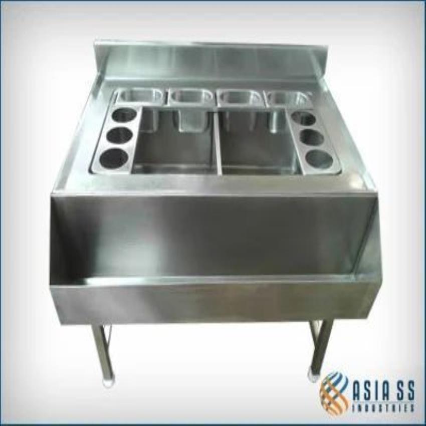 A functional cocktail station designed for efficient beverage preparation. Durable build ensures long-lasting performance in bar environments. Provides essential workspace.