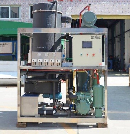 Electric Tube Ice Making Machine using R134a refrigerant. Produces 1000-10000 kg/day of bar-shaped ice. Operates on 380V with 50-60 Hz frequency.