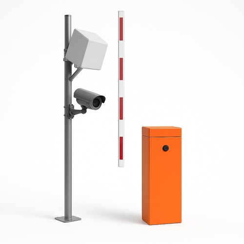 Aluminium barrier gate with access control. Features a 6-meter boom, 220V power supply, and a 6-second lift time for efficient traffic management.