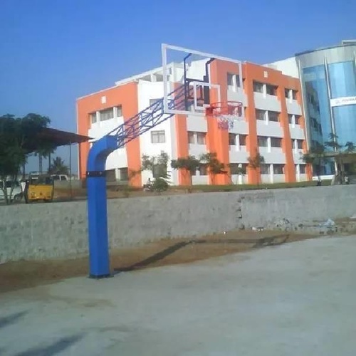 Mild steel basketball post for school and college use. Available in 10 feet size and multiple colors like blue and black. Durable construction for enhanced gameplay.
