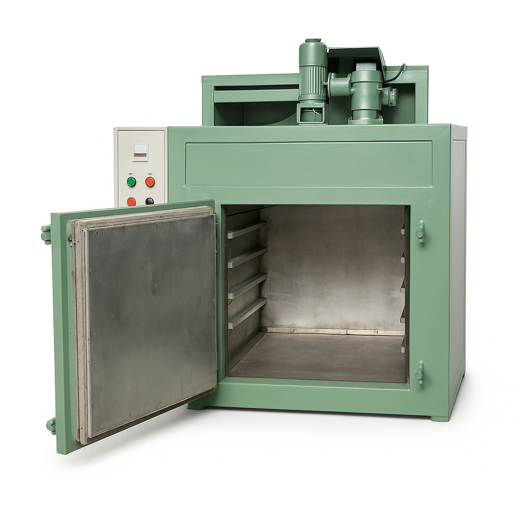 Batch type oven designed for efficient baking processes. Offers reliable performance for various production needs. Sturdy construction ensures durability and consistent operational results.