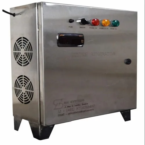 Semi-automatic stainless steel ozone generator for effluent treatment plants. Operates on 240V electrical power with 50 Hz frequency.