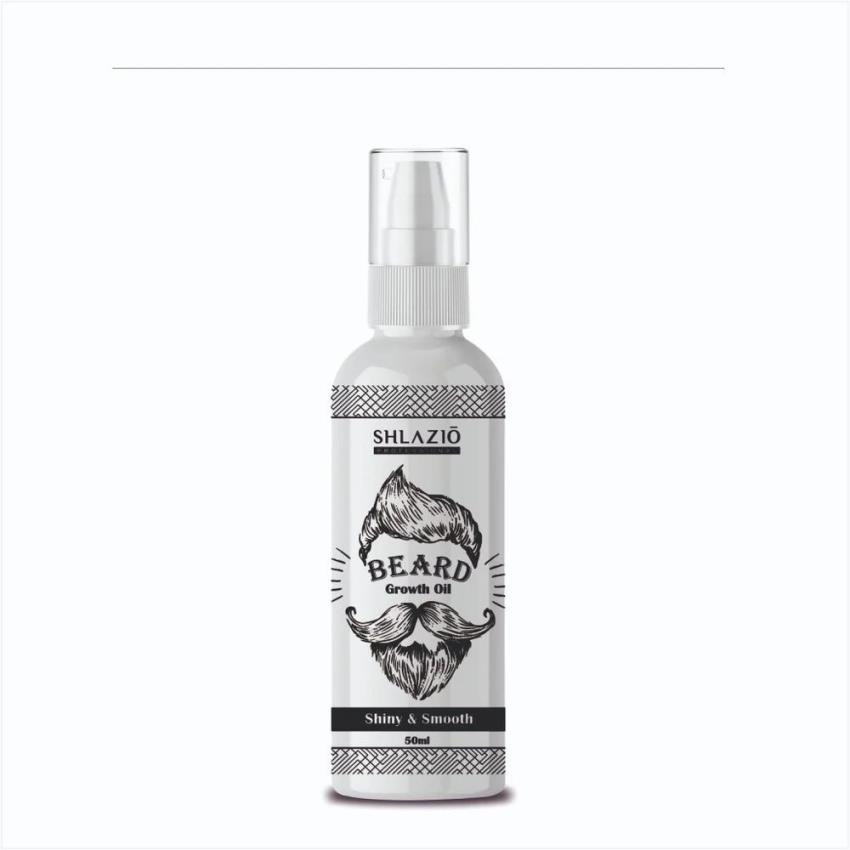 Male beard growth oil in liquid form. 50 ml bottle for all hair types. Applied for shiny results. Unisex product for men.