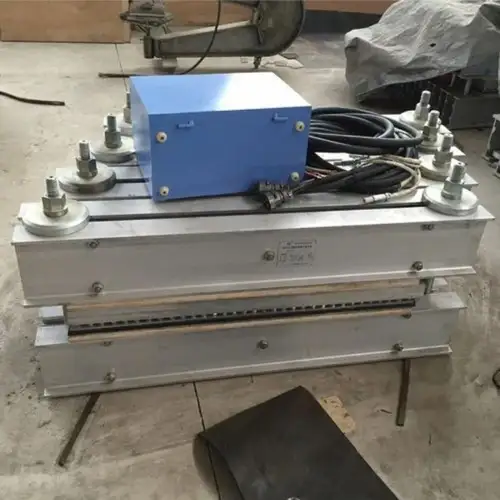 Efficiently joins conveyor belts with this durable machine. Designed for reliable performance in industrial settings, ensuring seamless material handling operations. Features robust construction for long-lasting use.