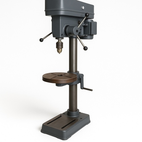 This bench drilling machine is designed for compact workspaces. Made in India, it offers precise drilling for various materials in a workshop setting.