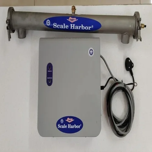 Semi-automatic scale prevention system using biocides and disinfectants. Features an SS 304 chamber for commercial and domestic use. Packaged in a cotton box.