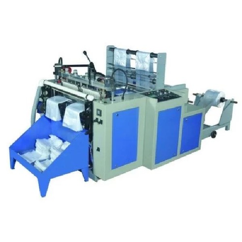 Corn starch material machine with 280 V, 50 Hz, three-phase power. Produces 80-240 bags per minute for bag making applications.