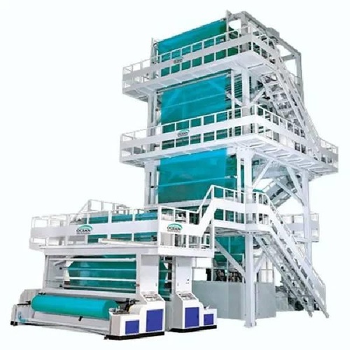 Automatic blown film lines for LD, PP, HM, and biodegradable materials. Capacity ranges from 55-125 kg/hr with 48-75 kW power consumption.