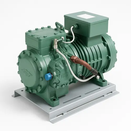 Semi-hermetic compressor, 5 HP. Features available spare parts. Designed for efficient cooling applications. Reliable performance guaranteed.