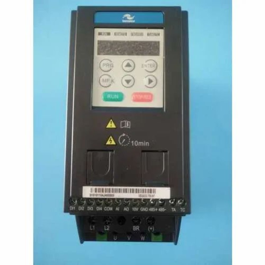 Black ABS single-phase AC drive for commercial use. Operates on 220V input and provides three-phase output. Electric power source.