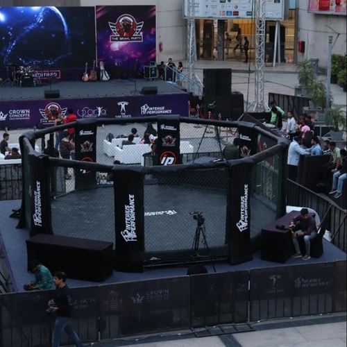 Mild steel black cage boxing ring, 24 ft x 24 ft. Suitable for boxing and MMA applications. Made in India. Durable construction for intense training.