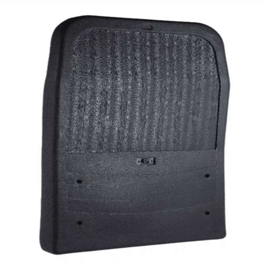 Plastic chair back cover in black, 21 inches wide. Standard design. Made in India. Minimum order quantity of 50 units.