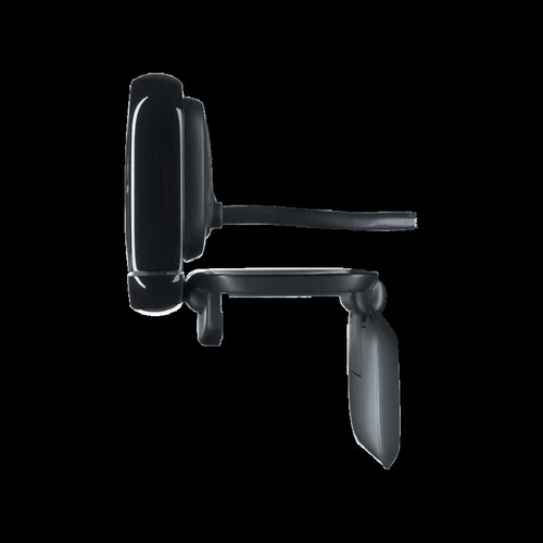 Foldable business webcam in black, featuring a 69-degree field of view and built-in microphone. Supports Windows/Linux, Hi-speed USB 2.0. Includes low light boost and 3-year warranty.