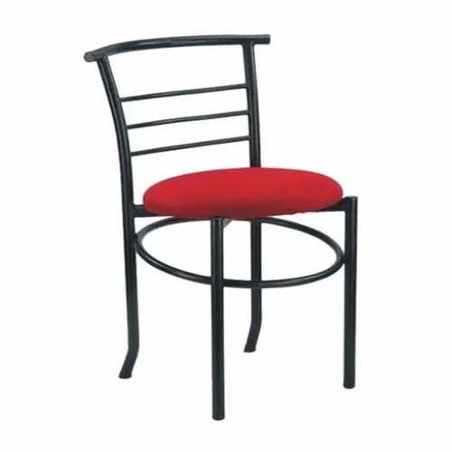 Single-seater cafe chair with a black leather seat and iron frame. Dimensions: 8 inches (LxW). Minimum order quantity of 10 units. Suitable for cafe applications.