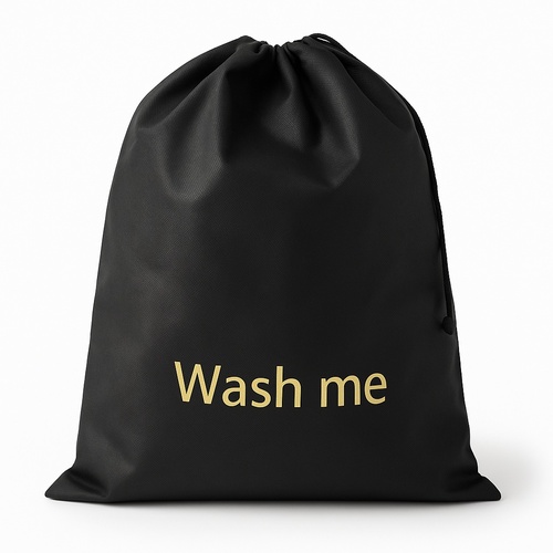 Black non-woven laundry bag, 45x60 cm, 5 Kg storage capacity, 37g weight per piece. Ideal for hotel laundry purposes. Minimum order quantity 2000 pieces.