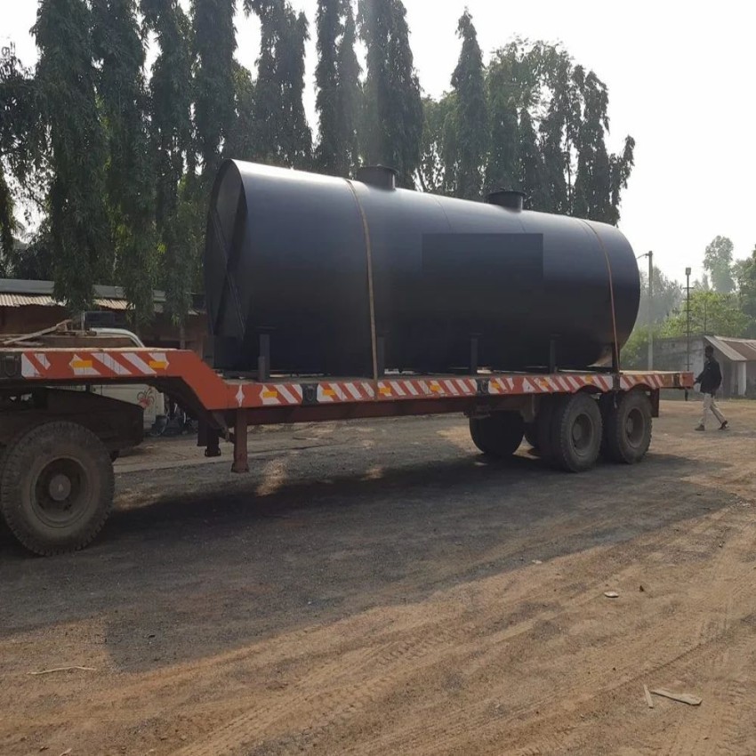 Mild steel BLACK oil storage machine. Cylindrical design, 9.5 Mtr size, 5mm wall thickness. Features light diesel tank compatibility. Leak and rust proof construction.