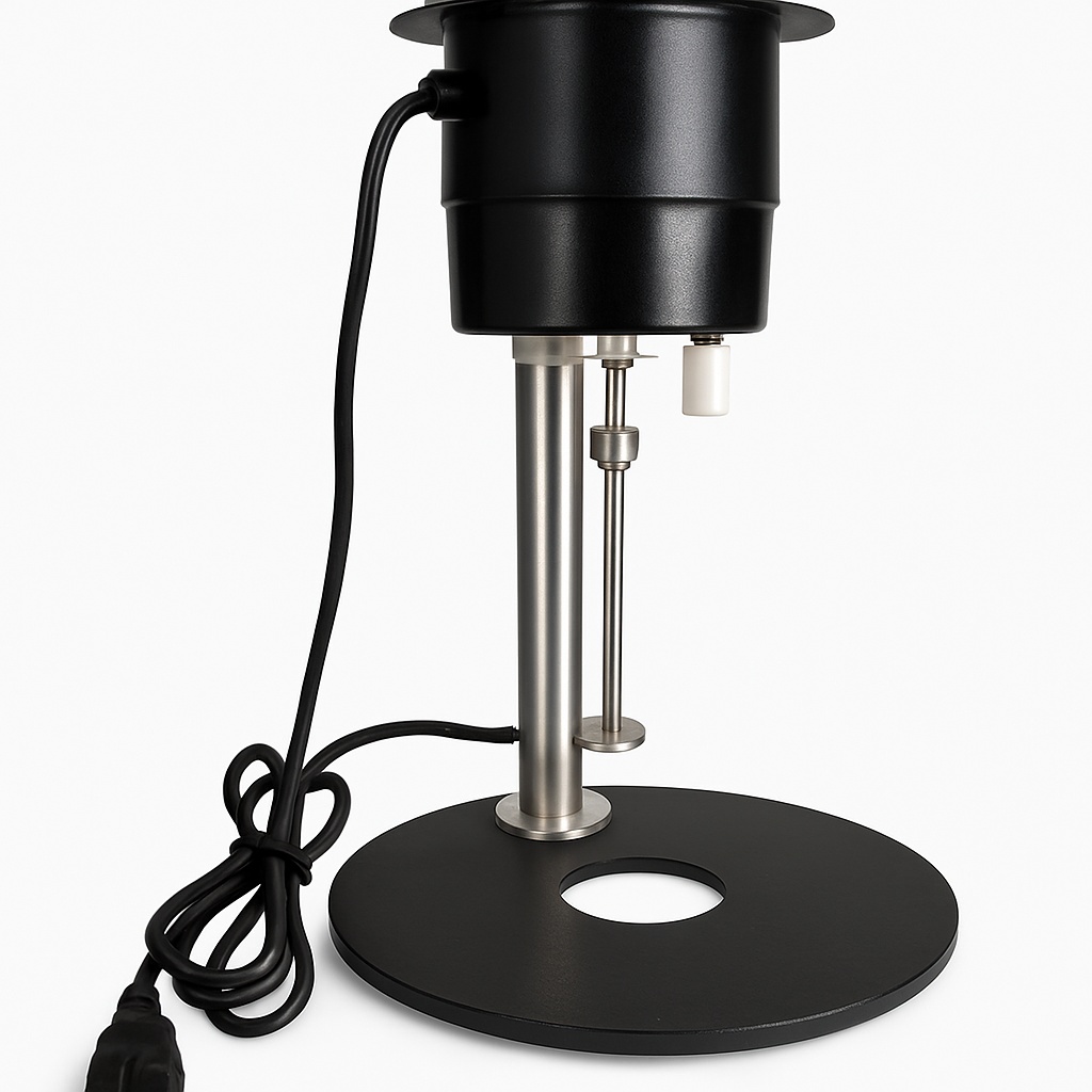Black stainless steel electric madhani stirrer for milk stirring applications. Durable construction for efficient milk agitation.