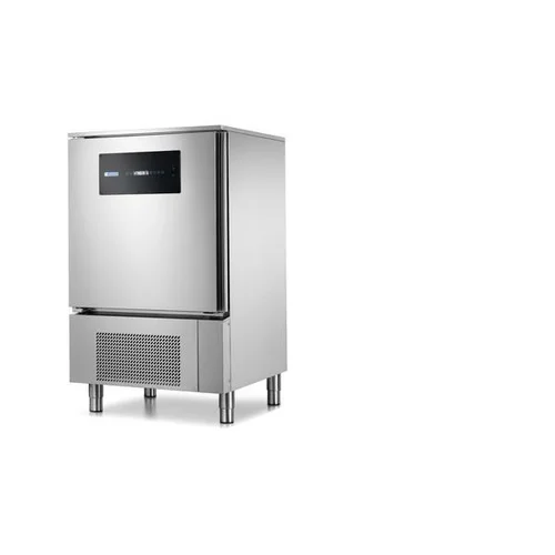 Single door blast freezer and chiller machine, 220V electric power. Stainless steel body with air-cooled compressor. Ideal for rapid cooling applications.