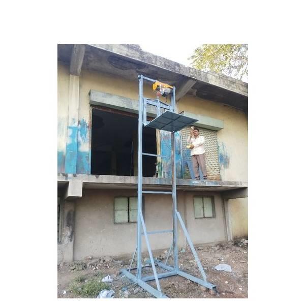 Mild steel construction equipment in blue, designed for lifting bricks and barrows up to 10 feet. Durable design for efficient material transport.