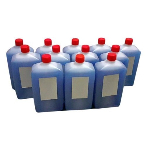 Blue liquid makeup for CIJ printers, packaged in a plastic bottle. Available in 600ml, 500ml, 750ml, 1000ml, and 5000ml sizes.