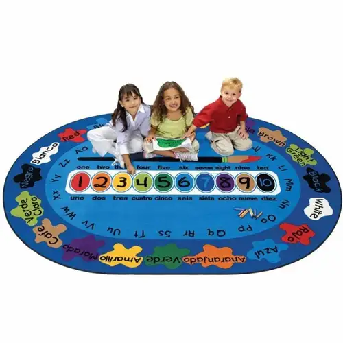 Blue educational carpet made of crystal velvet, size L240 x W160 cm, 7mm thickness. Velvet weave, suitable for indoor use.