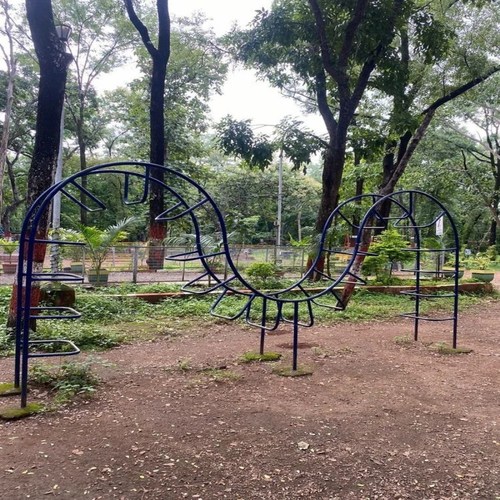 Blue mild steel climber for outdoor playgrounds. Features polished surface finishing and is designed for outdoor play applications.