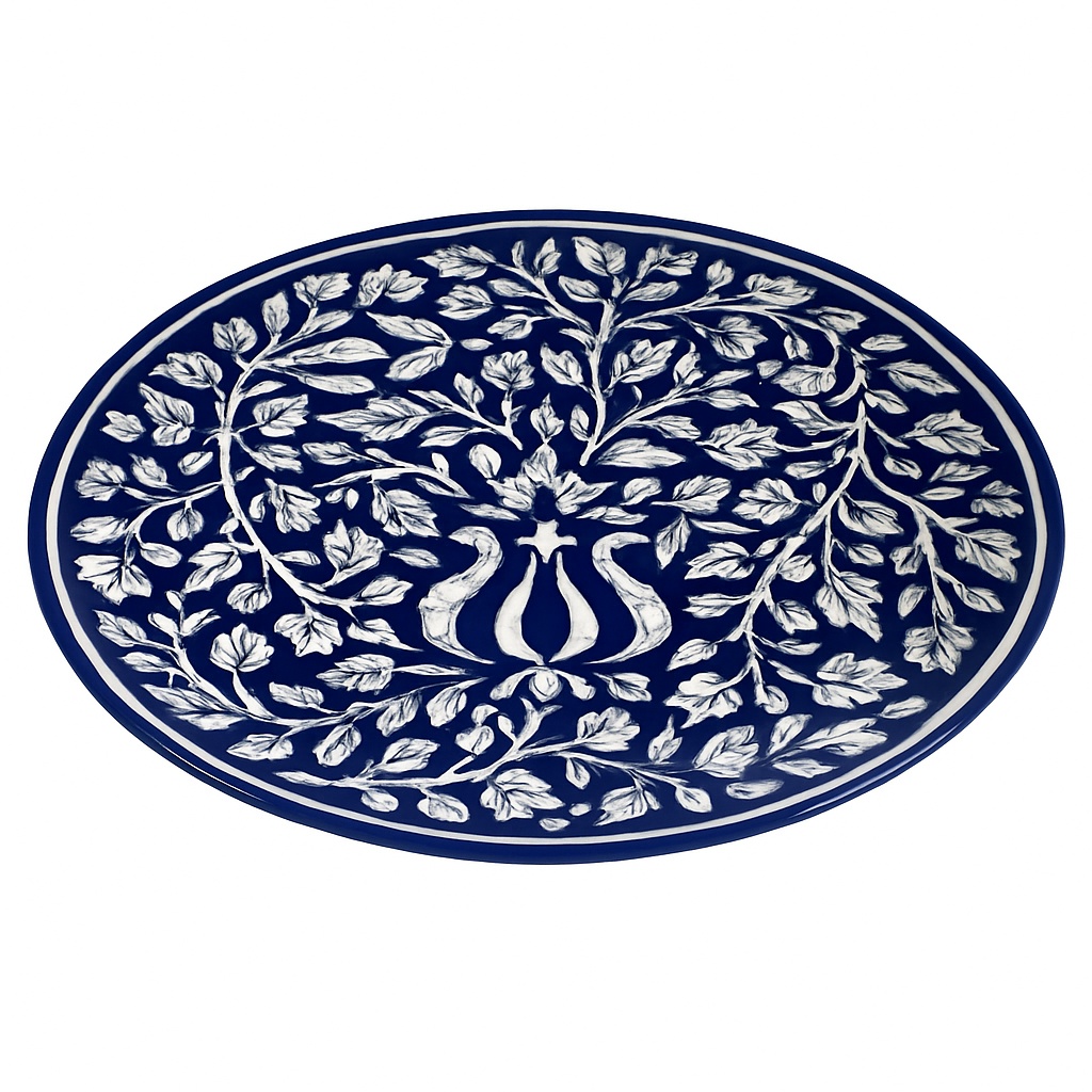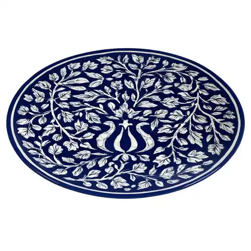 Blue and white ceramic clay dinner plate. Suitable for dinner applications in hotels and homes. Minimum order quantity of 100 sets.