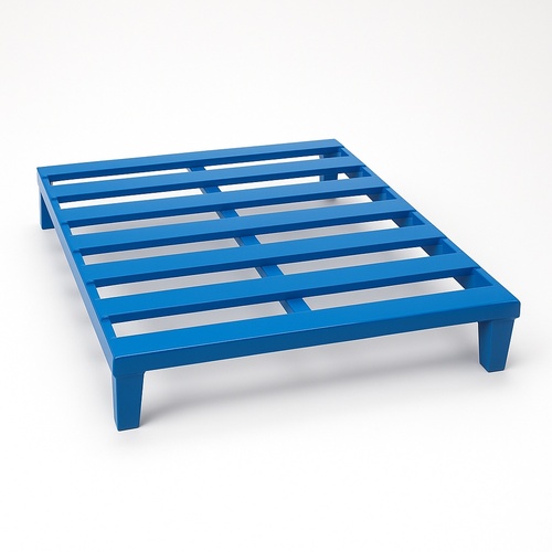 Rectangular mild steel pallet, 1300x1000mm, 2-ton capacity. Rust-proof, powder-coated blue finish for construction use. Minimum order of 5 pieces.