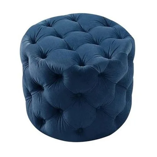 Blue Velvet Tufted Ottoman