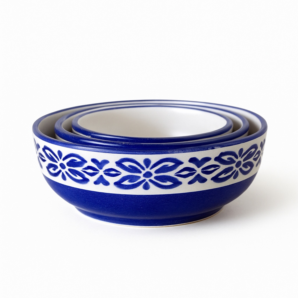 Blue White Ceramic Round Bowl Set, Interior Decor
