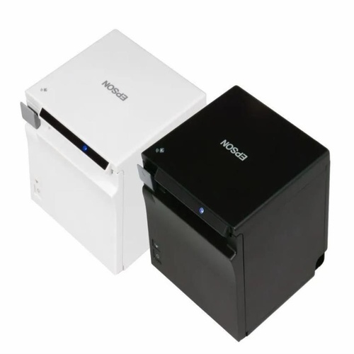 Epson TM-M30 Bluetooth billing printer. Offers monochrome output on 3-inch paper. Features Bluetooth and USB interface. New condition, ideal for retail and hospitality.