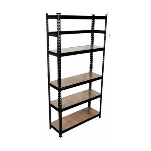 Five-shelf boltless steel display racks made from mild steel. Free-standing unit designed for efficient and easy assembly, ideal for organizing merchandise.