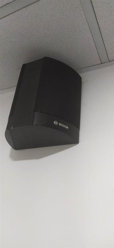 Rectangular 2.0 wooden Bosch speaker cabinet. Low voltage power specification, 6-inch size. Designed for clear audio reproduction.