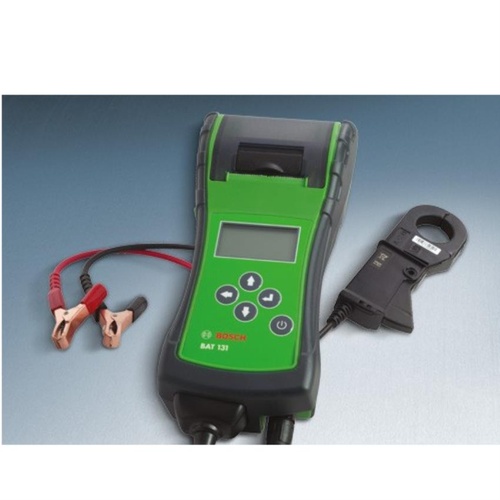 Bosch BAT 131 battery tester for passenger cars and commercial vehicles. Tests 6V/12V batteries (Standard, AGM, Gel) with 100-2000A CCA range.